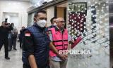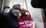 Direktur Sekolah Menengah Pertama Direktorat Jenderal Pendidikan Anak Usia Dini, Pendidikan Dasar dan Pendidikan Menengah Kemendikbudristek Tahun 2020–2021 Mulyatsyah (MUL) dengan menggunakan rompi tahanan berjalan usai menjalani pemeriksaan kasus dugaan korupsi digitalisasi pendidikan di Kemendikbudristek, di Gedung Kejaksaan Agung, Jakarta, Selasa (15/7/2025). Kejaksaan Agung menetapkan empat tersangka dalam kasus tersebut yaitu Direktur Sekolah Dasar Direktorat Jenderal Pendidikan Anak Usia Dini, Pendidikan Dasar dan Pendidikan Menengah Kemendikbudristek Tahun 2020–2021 Sri Wahyuningsih (SW), Direktur Sekolah Menengah Pertama Direktorat Jenderal Pendidikan Anak Usia Dini, Pendidikan Dasar dan Pendidikan Menengah Kemendikbudristek Tahun 2020–2021 Mulyatsyah (MUL), Staf khusus mantan Mendikbudristek Nadiem Makarim, Jurist Tan (JT/JS) dan Konsultan Teknologi di Kemendikbudristek Ibrahim Arief (IBAM). Dua tersangka, yakni Sri Wahyuningsih dan Mulyatsyah, ditahan di rutan, Sementara Ibrahim menjadi tahanan kota karena memiliki sakit jantung. Sementara, Jurist masih berada di luar negeri. (FOTO : Republika/Prayogi)