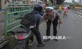 Petugas Kepolisian melakukan penindakan bagi pengendara yang melanggar aturan saat Operasi Patuh Jaya 2025 di kawasan Pasar Minggu, Jakarta Selatan, Kamis (17/7/2025). Polda Metro Jaya ngerahkan ribuan personel gabungan untuk menertibkan pengendara yang melanggar aturan lalu lintas pada Operasi Patuh Jaya 2025 yang digelar dari 14-27 Juli mendatang. Kegiatan operasi ini fokus menindak pengendara yang melakukan pelanggaran lalu lintas dan membahayakan keselamatan seperti tidak menggunakan helm, melawan arus hingga menggunakan ponsel saat berkendara. Sementara untuk penindakan di kawasan Pasar Minggu, petugas Kepolisian Polres Jakarta Selatan sudah melakukan tindakan penilangan terhadap sekitar sebanyak 50 pengendara yang rata-rata melakukan oelanggaran melawan arus dan tidak menggunakan helm. Operasi Patuh Jaya 2025 kali ini digelar di beberapa titik yang di lima wilayah Kota Administrasi Jakarta. Operasi kali ini, polisi tetap mengoptimalkan razia melalui metode hunting system dan kamera ETLE (Electronic Traffic Law Enforcement). (FOTO : Republika/Thoudy Badai)