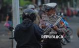 Petugas Kepolisian melakukan penindakan bagi pengendara yang melanggar aturan saat Operasi Patuh Jaya 2025 di kawasan Pasar Minggu, Jakarta Selatan, Kamis (17/7/2025). Polda Metro Jaya mengerahkan ribuan personel gabungan untuk menertibkan pengendara yang melanggar aturan lalu lintas pada Operasi Patuh Jaya 2025 yang digelar dari 14-27 Juli mendatang. Kegiatan operasi ini fokus menindak pengendara yang melakukan pelanggaran lalu lintas dan membahayakan keselamatan seperti tidak menggunakan helm, melawan arus hingga menggunakan ponsel saat berkendara. (FOTO : Republika/Thoudy Badai)