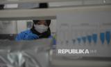 Petugas lab melakukan uji laboratorium beras premium di Balai Pengujian Mutu Produk Kementeriam Pertanian, Jakarta, Kamis (17/7/2025). Pengujian tersebut dilakukan untuk mengetahui kualitas beras preium dengan ketentuan mutu berdasarkan regulasi dari Kementerian Pertanian dan Badan Pangan Nasional. Pengujian tersebut meliputi pengecekan kadar air, derajat sosoh (tingkatpenggilingan), jumlah butir kepala, butir patah, menir, gabah, butir rusak, butir kapur, butir merah, serta benda asing. Hal tersebut dilakukan untuk memverifikasi temuan penyimpangan mutu dan label beras. (FOTO : Republika/Thoudy Badai)