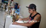 Pekerja menjahit produk busana muslim di konveksi CV Hasabah Abadi Jaya binaan Bank Syariah Indonesia (BSI) di Cipinang, Jakarta Timur, Jumat (18/7/2025). BSI mendorong transformasi UMKM agar naik kelas melalui pelatihan manajemen keuangan bagi para pelaku usaha kecil, menghubungkan dengan komunitas usaha dan juga memberikan kesempatan business matching kepada pelaku UMKM. (FOTO : Republika/Edwin Dwi Putranto)