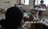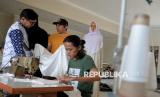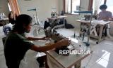 REPUBLIKA.CO.ID, JAKARTA -- Pekerja menjahit produk busana muslim di konveksi CV Hasabah Abadi Jaya binaan Bank Syariah Indonesia (BSI) di Cipinang, Jakarta Timur, Jumat (18/7/2025).