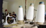 Pekerja menjahit produk busana muslim di konveksi CV Hasabah Abadi Jaya binaan Bank Syariah Indonesia (BSI) di Cipinang, Jakarta Timur, Jumat (18/7/2025). BSI mendorong transformasi UMKM agar naik kelas melalui pelatihan manajemen keuangan bagi para pelaku usaha kecil, menghubungkan dengan komunitas usaha dan juga memberikan kesempatan business matching kepada pelaku UMKM. (FOTO : Edwin Putranto/Republika)