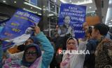 Pendukung terdakwa Thomas Trikasih Lembong atau Tom Lembong mengangkat poster berisi dukungan saat menghadiri sidang pembacaan putusan di Pengadilan Negeri Tipikor, Jakarta, Senin (30/6/2025). Majelis Hakim menjatuhkan hukuman kepada mantan Menteri Perdagangan Tom Lembong dengan pidana 4 tahun dan enam bulan penjara, denda Rp750 juta subsider 6 bulan kurungan dalam kasus dugaan korupsi impor gula. (FOTO : Republika/Thoudy Badai)