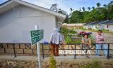 REPUBLIKA.CO.ID, SUMBAR -- Warga berada di depan rumahnya di perumahan relokasi terpadu, Ladang Laweh, Nagari Rambatan, Sumatera Barat, Ahad (20/7/2025).