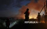 REPUBLIKA.CO.ID, OGAN ILIR -- Petugas berusaha memadamkan api yang membakar lahan gambut di Ogan Ilir, Sumatera Selatan, Ahad (20/7/2025).