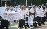 REPUBLIKA.CO.ID, JAKARTA -- Tenaga honorer yang tergabung dalam Aliansi R4 Indonesia melakukan aksi damai di Jalan Merdeka Selatan, Jakarta, Senin (21/7/2025).