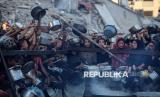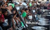 Warga Palestina berdesakan saat antre untuk mendapatkan bantuan makanan di titik distribusi makanan di Kota Gaza, Ahad (20/7/2025) waktu setempat. Dalam 24 jam terakhir, 18 orang meninggal di Gaza karena kelaparan, kata Kementerian Kesehatan Gaza. Sedikitnya 86 orang di Gaza, termasuk 76 anak-anak dan 10 orang dewasa, meninggal dunia akibat kelaparan dan malnutrisi menyusul blokade israel. Saat ini nyaris seluruh warga Gaza telah terdampak kelaparan ekstrem. Program Pangan Dunia mengatakan hampir satu dari tiga orang di Gaza tidak makan selama berhari-hari, dan ribuan orang berada di ambang kelaparan yang parah. (FOTO : Majdi Fathi/NurPhoto via Reuters)