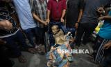 Seorang penyandang disabilitas Palestina, Mohammad Ihsan al-Sawwafiri berusia 35 tahun meninggal akibat kelaparan saat dibawa ke Rumah Sakit Baptis Al-Ahli di Kota Gaza, Palestina, Ahad (20/7/2025). Al-Sawwafiri menderita malnutrisi, meninggal dunia di tengah kekurangan makanan dan obat-obatan yang parah akibat blokade dan serangan militer Israel di Jalur Gaza. Dalam 24 jam terakhir, 18 orang meninggal di Gaza karena kelaparan, kata Kementerian Kesehatan Gaza. Sedikitnya 86 orang di Gaza, termasuk 76 anak-anak dan 10 orang dewasa, meninggal dunia akibat kelaparan dan malnutrisi menyusul blokade israel. (FOTO : Hamza Qraiqea/Anadolu via Reuters)