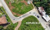 Foto udara jalan Bojonggede-Kemang (Bomang) yang belum selesai dikerjakan di Tajur Halang, Kabupaten Bogor, Jawa Barat, Senin (21/7/2025). Pemerintah Kabupaten Bogor melalui Dinas Pekerjaan Umum dan Penataan Ruang (PUPR) kembali melanjutkan pembangunan infrastruktur strategis Jalan Bojonggede–Kemang (Bomang) yang akan menghubungkan dua jalan nasional yakni Jalan Raya Jakarta - Bogor dan Jalan Raya Parung, tahun ini ditargetkan pembebasan lahan serta pembangunan untuk jalur lambat di jalan tersebut selesai dibangun dengan nilai anggaran Rp33 miliar. (FOTO : ANTARA FOTO/Yulius Satria Wijaya)