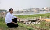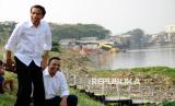 Calon presiden pasangan nomor urut dua Joko Widodo berkunjung ke Taman Waduk Pluit di Jakarta Utara, Selasa (22/7/2014). Joko Widodo yang menjabat sebagai Gubernur DKI Jakarta menyempatkan diri meninjau perkembangan proses revitalisasi Waduk Pluit di sela-sela menunggu selesainya proses rekapitulasi suara nasional Pemilu Presiden Tahun 2014 yang berlangsung di Gedung KPU, Jakarta. (FOTO : Yasin Habibi/Republika)