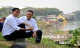 Calon presiden pasangan nomor urut dua Joko Widodo, dan Juru Bicara Tim Pemenangan Pasangan Jokowi-JK, Anies Baswedan berkunjung ke Taman Waduk Pluit di Jakarta Utara, Selasa (22/7/2014). Joko Widodo yang menjabat sebagai Gubernur DKI Jakarta menyempatkan diri meninjau perkembangan proses revitalisasi Waduk Pluit di sela-sela menunggu selesainya proses rekapitulasi suara nasional Pemilu Presiden Tahun 2014 yang berlangsung di Gedung KPU, Jakarta. (FOTO : Yasin Habibi/Republika)