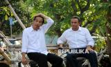 Calon presiden pasangan nomor urut dua Joko Widodo (kiri), dan Juru Bicara Tim Pemenangan Pasangan Jokowi - JK, Anies Baswedan saat berkunjung ke Taman Waduk Pluit di Jakarta Utara, Selasa (22/7/2014). Joko Widodo yang menjabat sebagai Gubernur DKI Jakarta menyempatkan diri meninjau perkembangan proses revitalisasi Waduk Pluit di sela-sela menunggu selesainya proses rekapitulasi suara nasional Pemilu Presiden Tahun 2014 yang berlangsung di Gedung KPU, Jakarta. (FOTO : Yasin Habibi/Republika)