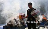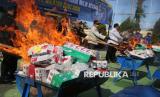 REPUBLIKA.CO.ID, ACEH -- Petugas Bea dan Cukai Aceh membakar barang hasil penindakan berupa rokok impor ilegal saat pemusnahan di Banda Aceh, Aceh, Selasa (22/7/2025).