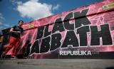 Seorang pria berjalan melewati mural yang dilukis untuk menghormati band rock Black Sabbath menjelang konser reuni bertajuk Back to the Beginning di Birmingham, Inggris, Rabu (2/7/2025). Tujuh belas hari setelah konser itu, vokalis Black Sabbath, Ozzy Osbourne meninggal dunia karena komplikasi penyakit yang dialaminya. (FOTO : REUTERS/Phil Noble)