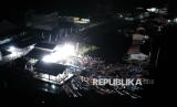 Foto udara sejumlah warga menonton bioskop terapung dari perahunya di Desa Muara Enggelam, Muara Wis, Kutai Kartanegara, Kalimantan Timur, Selasa (22/7/2025). Bioskop terapung yang diinisiasi oleh Layar Mahakama berlangsung di tiga danau di Kalimantan Timur yakni Danau Semayang di Desa Sangkuliman, Danau Melintang di Desa Muara Enggelam, dan Danau Jempang di Desa Tanjung Jone itu hadir sebagai alternatif hiburan untuk masyarakat pesisir yang selama ini jauh dari akses bioskop konvensional. (FOTO : ANTARA FOTO/M Risyal Hidayat)