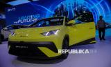 BYD Atto 1 merupakan mobil listrik di segmen battery atau electric vehicle (EV) yang harganya hampir setara dengan mobil jenis low cost green car (LCGC) yakni dibawah Rp200 juta atau Rp195 juta. (FOTO : Republika/Thoudy Badai)