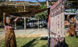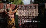 REPUBLIKA.CO.ID, SUMBA TIMUR -- Perajin menjajakan kain tenun ikat Sumba di Kampung Raja Prailiu, Waingapu, Sumba Timur, NTT, Rabu (23/7/2025).