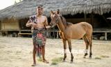 Tokoh adat Kampung Raja Prailiu Umbu Remi Pas berpose dengan mengenakan kain tenun ikat Sumba di Kampung Raja Prailiu, Waingapu, Sumba Timur, NTT, Rabu (23/7/2025). Kekayaan tenun ikat Sumba terletak pada keragaman motif dan kedalaman makna filosofisnya. Motif-motif yang terukir, seperti kuda, buaya, burung, atau figur manusia mamuli, bukan hanya hiasan, melainkan simbol sakral yang dipercaya memiliki kekuatan spiritual dan menceritakan kisah-kisah epik dari masa lalu, bahkan menunjukkan kasta pemakainya. (FOTO : ANTARA FOTO/Rivan Awal Lingga)