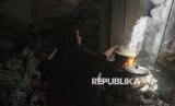 Naima Abu Ful memasak untuk keluarganya di rumah mereka di kamp pengungsi Shati di Kota Gaza Rabu (23/7/2025). Naima yang tengah mengandung, kesulitan mencari bahan makanan untuk anak-anaknya. Yazan Abu Ful, salah satu anak Naima, menderita malnutrisi akut. (FOTO : AP Photo/Jehad Alshrafi)