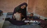 Naima Abu Ful bersama anaknya yang berusia 2 tahun yang kekurangan gizi, Yazan, berada di rumah mereka di kamp pengungsi Shati di Kota Gaza, Rabu (23/7/2025). Ayah dari Yazan, Mahmoud, mengatakan mereka sudah membawa anaknya ke rumah sakit beberapa kali. Dokter hanya menyarankan untuk memberinya makan. Namun orang tua Yazan menjelaskan tak ada makanan yang bisa diberikan untuk anak mereka. (FOTO : AP Photo/Jehad Alshrafi)