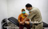 Ibu Heti Herawati menjalani pemeriksaan dokter di faskes tingkat pertama. Semua proses pengobatan yang Heti Herawati jalani, menggunakan Badan Penyelenggara Jaminan Sosial (BPJS) Kesehatan/ Jaminan Kesehatan Nasional (JKN). Kehadiran BPJS Kesehatan menjadi fasilitas yang sangat membantu ibu di masa tua dan sakit. Ibu terdaftar sebagai peserta BPJS Kesehatan melalui suaminya yang saat ini merupakan pensiunan PNS. (FOTO : Prayogi/Republika)