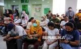 Ibu Heti Herawati (64) menunggu antrian di faskes tingkat pertama, Jakarta. (FOTO : Prayogi/Republika)
