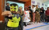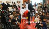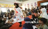 REPUBLIKA.CO.ID, BANDUNG -- Sejumlah anak tampil mengenakan aksesoris dan pakaian dari limbah plastik saat peragaan busana Puncak Hari Anak Nasional dan Dialog Anak Jalanan bertajuk Literasi dalam Membangun Peradaban sebagai Upaya Pengentasan Kemiskinan Anak Jalanan, di Aula Dinas Arsip dan Perpustakaan, Kota Bandung, Ahad (27/7/2025).