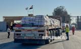 Truk yang membawa bantuan kemanusiaan memasuki perbatasan Rafah antara Mesir dan Jalur Gaza, Ahad (27/7/2025). Bantuan kemanusiaan mulai memasuki Gaza menyusul diberlakukannya jeda aktivitas militer taktis lokal di tiga wilayah berpenduduk padat di Gaza selama 10 jam sehari. Selama jeda aktivitas militer, bantuan kemanusiaan diizinkan masuk di Kota Gaza, Deir al-Balah dan Muwasi. (FOTO : AP Photo/Mohamed Arafat)