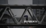 Warga melindungi kepalanya menggunakan tas saat hujan di Jalan Sudirman di Jakarta, Senin (28/7/2025). Sejumlah wilayah di Jakarta Pusat, Jakarta Selatan dan Timur diguyur hujan pada siang hari pukul 13.30 WIB. Suasana lalu lintas di kawasan Sudirman sempat mengalami kemacetan akibat intensitas hujan tinggi. Sementara BMKG mengimbau masyarakat untuk waspada terhadap potensi perubahan cuaca serta disarankan membawa perlengkapan seperti payung dan jas hujan. (FOTO : Republika/Thoudy Badai)