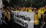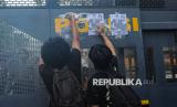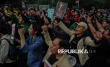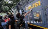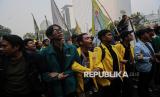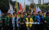 Massa dari Badan Eksekutif Mahasiswa Seluruh Indonesia (BEM SI) melakukan aksi bertajuk Aksi Indonesia Cemas 2025 di kawasan Patung Kuda, Jakarta, Senin (28/7/2025). Dalam aksinya, BEM SI menyoroti sejumlah isu diantaranya penolakan terhadap RKUHAP, penulisan ulang sejarah hingga penolakan terhadap pembangunan lima batalyon di Aceh. (FOTO : Republika/Thoudy Badai)
