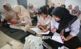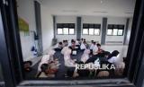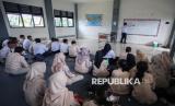 REPUBLIKA.CO.ID, SERPONG -- Siswa mengikuti kegiatan belajar mengajar tanpa meja dan kursi di SMKN 8 Tangerang Selatan, Serpong, Tangerang Selatan, Banten, Selasa (29/7/2025).
