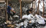 Pedagang mencari sisa-sisa barang di kiosnya yang hangus terbakar di Pasar Taman Puring, Jakarta. Para pedagang berharap Pasar Taman Puring bisa segera dibangun kembali agar mereka dapat kembali berjualan. (FOTO : Republika/Prayogi)