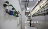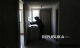 Pekerja membersihkan unit di dalam bangunan Hunian Pekerja Pendukung Operasional (HPPO) Jakarta Internasional Stadium (JIS) atau Kampung Susun Bayam, Jakarta, Rabu (30/7/2025). (FOTO : Republika/Prayogi)