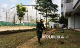 Pekerja memotong rumput di Hunian Pekerja Pendukung Operasional (HPPO) Jakarta Internasional Stadium (JIS) atau Kampung Susun Bayam, Jakarta, Rabu (30/7/2025). Pemerintah Provinsi DKI Jakarta memastikan Hunian Pekerja Pendukung Operasional (HPPO) Jakarta Internasional Stadium (JIS) atau Kampung Susun Bayam sudah siap ditempati. Dalam waktu dekat, proses pengisian unit akan segera dilakukan oleh warga eks Kampung Bayam. Pemprov DKI Jakarta terus mendorong percepatan pemanfaatan Kampung Susun bayam sebagai hunian layak dan terjangkau bagi warga, sekaligus menjaga prinsip keadilan sosial dalam setiap proses relokasi dan penyediaan hunian. (FOTO : Prayogi/Republika)