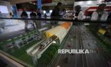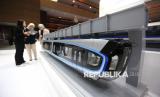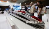 Pengunjung mengamati replika kereta yang dipamerkan dalam Pameran Railwaytech 2025 di JIExpo Kemayoran, Jakarta, Rabu (30/7/2025). Pameran berskala internasional ini menampilkan berbagai teknologi terbaru di industri perkeretaapian dan menjadi ajang pertemuan pelaku industri dari berbagai negara. Kegiatan juga ini diharapkan dapat mendorong percepatan pengembangan industri perkeretaapian di Indonesia. (FOTO : Republika/Prayogi)