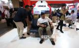 Pengunjung mencoba kursi kereta dalam Pameran Railwaytech 2025 di JIExpo Kemayoran, Jakarta, Rabu (30/7/2025). Pameran berskala internasional ini menampilkan berbagai teknologi terbaru di industri perkeretaapian dan menjadi ajang pertemuan pelaku industri dari berbagai negara. Kegiatan juga ini diharapkan dapat mendorong percepatan pengembangan industri perkeretaapian di Indonesia. (FOTO : Republika/Prayogi)