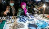 Petugas Dinas Ketahanan Pangan Kota Tangerang menguji sampel bahan pangan segar di Pasar Malabar, Kota Tangerang, Banten, Kamis (31/7/2025). Pemeriksaan pangan segar seperti ikan, ayam dan daging dengan metode tes cepat tersebut untuk mengetahui ambang batas aman residu pestisida dan uji kandungan formalin guna memastikan keamanan pangan yang dikonsumsi masyarakat. (FOTO : ANTARA FOTO/Putra M. Akbar)