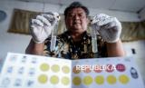 Petugas Dinas Ketahanan Pangan Kota Tangerang menunjukkan hasil sampel bahan pangan segar yang telah diuji di Pasar Malabar, Kota Tangerang, Banten, Kamis (31/7/2025). Pemeriksaan pangan segar seperti ikan, ayam dan daging dengan metode tes cepat tersebut untuk mengetahui ambang batas aman residu pestisida dan uji kandungan formalin guna memastikan keamanan pangan yang dikonsumsi masyarakat. (FOTO : ANTARA FOTO/Putra M. Akbar)