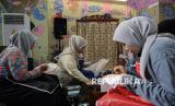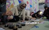 Peserta mengikuti kegiatan membatik saat acara Gelar Batik Nusantara 2025 di Pasaraya Blok M, Jakarta Selatan, Kamis (31/7/2025). Acara tersebut menyajikan beragam koleksi batik autentik, diorama sejarah batik nusantara, bazar kain dan produk batik lainnya hingga pelatihan pembuatan batik tulis bagi pengunjung. Gelar Batik Nusantara ini berlangsung hingga 3 Agustus 2025 mendatang yang diharapkan mampu menjadi ruang interaksi mengenai tradisi batik, ruang kreasi hingga ruang kolaborasi lintas generasi sehingga dapat melestarikan batik nusantara. (FOTO : Republika/Thoudy Badai)
