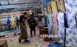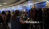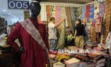 Pengunjung di area Gelar Batik Nusantara 2025 di Pasaraya Blok M, Jakarta Selatan, Kamis (31/7/2025). Acara tersebut menyajikan beragam koleksi batik autentik, diorama sejarah batik nusantara, bazar kain dan produk batik lainnya hingga pelatihan pembuatan batik tulis bagi pengunjung. Gelar Batik Nusantara ini berlangsung hingga 3 Agustus 2025 mendatang yang diharapkan mampu menjadi ruang interaksi mengenai tradisi batik, ruang kreasi hingga ruang kolaborasi lintas generasi sehingga dapat melestarikan batik nusantara. (FOTO : Republika/Thoudy Badai)