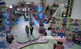 Pengunjung beraktivitas di area Gelar Batik Nusantara 2025 di Pasaraya Blok M, Jakarta Selatan, Kamis (31/7/2025). Acara tersebut menyajikan beragam koleksi batik autentik, diorama sejarah batik nusantara, bazar kain dan produk batik lainnya hingga pelatihan pembuatan batik tulis bagi pengunjung. Gelar Batik Nusantara ini berlangsung hingga 3 Agustus 2025 mendatang yang diharapkan mampu menjadi ruang interaksi mengenai tradisi batik, ruang kreasi hingga ruang kolaborasi lintas generasi sehingga dapat melestarikan batik nusantara. (FOTO : Republika/Thoudy Badai)