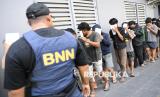 REPUBLIKA.CO.ID, SAMARINDA -- Sejumlah pengguna yang tertangkap dalam razia narkoba jenis sabu-sabu berbaris di kantor Badan Narkotika Nasional Provinsi (BNNP) Kalimantan Timur di Samarinda, Jumat (1/8/2025).