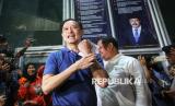 Mantan Menteri Perdagangan Tom Lembong saat keluar dari Rutan Cipinang, Jakarta, Jumat (1/8/2025). Tom Lembong resmi bebas dari Rutan Cipinang setelah mendapatkan abolisi dari Presiden Prabowo Subianto. Tom Lembong disambut para pendukungnya tepat di depan pintu keluar rutan. Pembebasan Tom disambut gembira pendukugnya. Sebelumnya Tom Lembong divonis hukuman penjara 4 tahun 6 bulan oleh Pengadilan Negeri Tindak Pidana Korupsi (PN Tipikor) Jakarta. Hal itu terkait kasus korupsi pemberian izin impor gula di Kementerian Perdagangan (Kemendag). (FOTO : Republika/Prayogi)