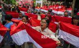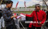 REPUBLIKA.CO.ID, SEMARANG -- Petugas membagikan Bendera Merah Putih kepada warga di obyek Desa Wisata Bukit Cinta Danau Rawa Pening, Dusun Kebondowo, Kabupaten Semarang, Jawa Tengah, Sabtu (2/8/2025).