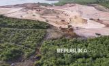 Penampakan pembukaan lahan untuk pembangunan kawasan ekonomi khusus (KEK) di Pulau Tanjung Sauh, Kepulauan Riau, Sabtu (2/8/2025). Pemerintah setempat merelokasi sebanyak 40 kepala keluarga (KK) warga keturunan Suku Laut ke Pulau Ngenang karena kawasan mereka masuk dalam area pengembangan KEK Tanjung Sauh. (FOTO : ANTARA FOTO/Teguh Prihatna)