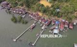 Permukiman bantuan Rumah Tidak Layak Huni (RTLH) warga Suku Laut yang terdampak pengembangan kawasan ekonomi khusus (KEK) di kampung Air Mas, Pulau Tanjung Sauh, Kepulauan Riau, Sabtu (2/8/2025). Pemerintah setempat merelokasi sebanyak 40 kepala keluarga (KK) warga keturunan Suku Laut ke Pulau Ngenang karena kawasan mereka masuk dalam area pengembangan KEK Tanjung Sauh. (FOTO : ANTARA FOTO/Teguh Prihatna)