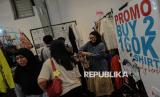 Pada akhir pekan, sejumlah pengunjung memadati area gelaran Garage Sale untuk berburu pakaian vintage hingga sneaker. Acara tersebut diharapkan tidak hanya menjadi sarana transkasi jual beli, namun menjadi ruang interaksi sekaligus wadah bagi para pelaku gaya hidup berkelanjutan guna mendukung pengurangan limbah tekstil dan konsumsi berlebih. (FOTO : Republika/Thoudy Badai)