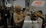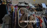 Pengunjung berbelanja di acara Garage Sale Jakarta di Pos Bloc, Jakarta, Ahad (3/8/2025). Acara tersebut menjual beragam produk fesyen preloved atau bekas layak pakai seperti baju, celana, jaket, sepatu hingga akseseori seperti gelang, cincin hingga jam tangan dengan harga terjangkau mulai dari Rp50 ribu hingga jutaan. Sebanyak 65 stan ikut berpartisipasi dalam kegiatan ini. Pada akhir pekan, sejumlah pengunjung memadati area gelaran Garage Sale untuk berburu pakaian vintage hingga sneaker. Acara tersebut diharapkan tidak hanya menjadi sarana transkasi jual beli, namun menjadi ruang interaksi sekaligus wadah bagi para pelaku gaya hidup berkelanjutan guna mendukung pengurangan limbah tekstil dan konsumsi berlebih. (FOTO : Republika/Thoudy Badai)