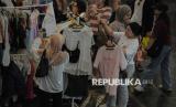 Pengunjung berbelanja di acara Garage Sale Jakarta di Pos Bloc, Jakarta, Ahad (3/8/2025). Acara tersebut menjual beragam produk fesyen preloved atau bekas layak pakai. (FOTO : Republika/Thoudy Badai)